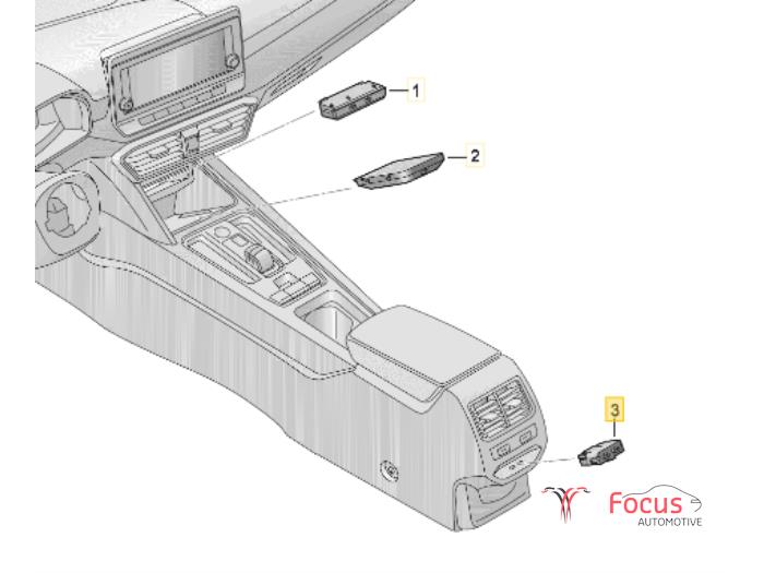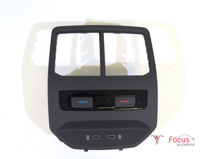 Weergave- en bedieningseenheid met regelapp. voor elektronisch geregelde airconditioning satynzwart/wit + Dubbele USB-bus met geïntegreerde spanningsomvormer + afdekkap. Gemonteerd achterop de arm steun.